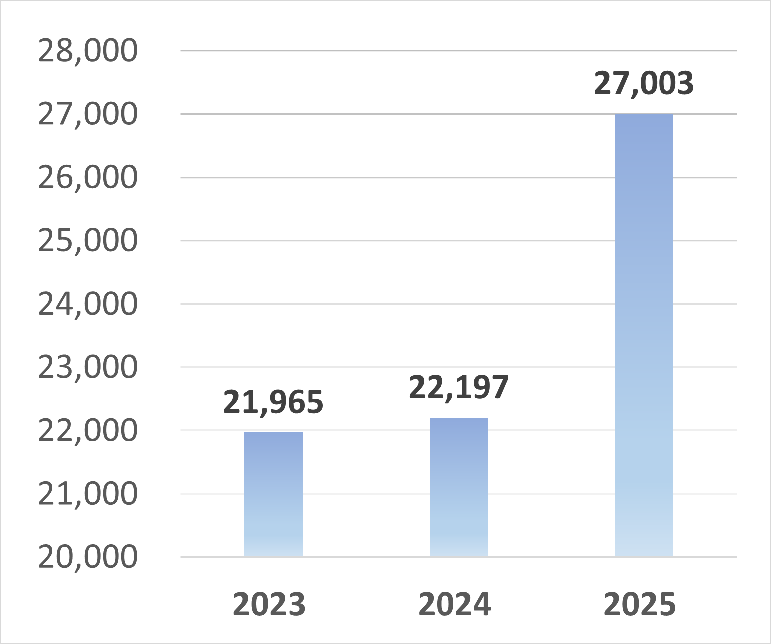 | 资产总数 | 21,965 | 22,197 | 27,003 |