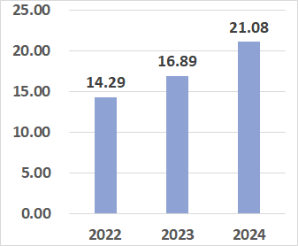 | 稳定性指标 | 负债率 | 14.29% | 16.89% | 21.08% |